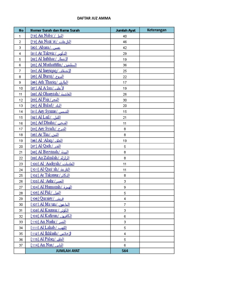 | Judul Surah: Daftar Urutan Surat Surat Pendek Dalam Al Qur An Juz Amma Juz 30 |